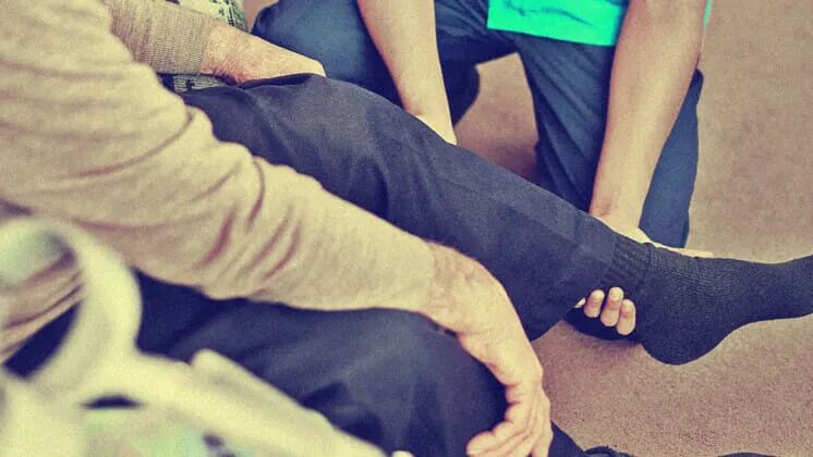 这就意味着从今天零点开始到今天晚上23点,我不能喝水吃饭,混混沌沌中熬过了六个小时,此时的我睡意已经掩盖了饥饿和口渴,就这样昏昏沉沉中结束了冬至。夜晚,左膝的伤口开始疼痛,我想忍忍,但是一种灼热撕裂的感觉一直持续并在加重,想换个睡姿来缓解,可是左腿无法抬起,妻子看出了我的痛苦,询问后去手术室买了止疼泵,在药效的作用下,疼痛减弱,迷迷糊糊中又睡去。接下来的日子就是规律的输液,早中晚三餐,不停的踝泵,送走每个傍晚迎来每个清晨。但是,每次去卫生间都是折磨,从病床下地,在重力作用下,血液开始向左腿左脚涌去,瞬间感觉到左膝的伤口要在压力作用下被冲开,左脚慢慢的变成紫色,拄着双拐每移动一步都是艰难的。