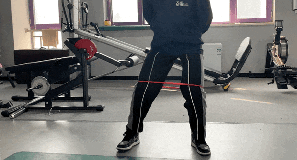 髋外展静力支撑:用弹力带固定膝盖,保持张力。
