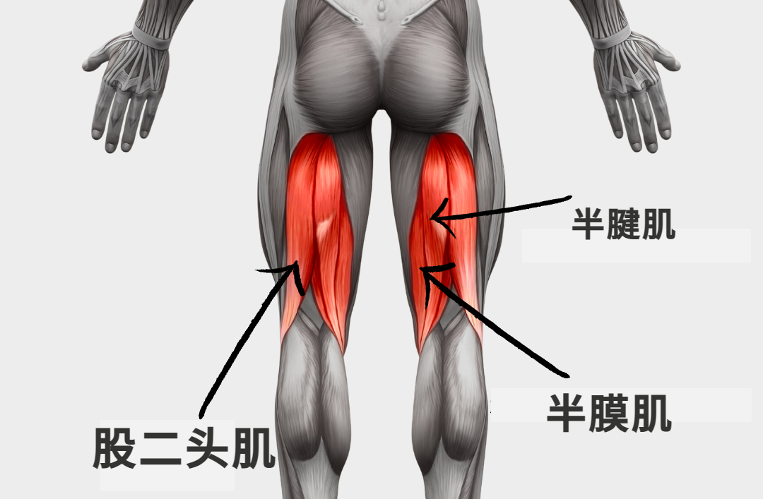 说到屈膝,第一个要提的就是腘绳肌群,它们是大腿后侧那三块肌肉: