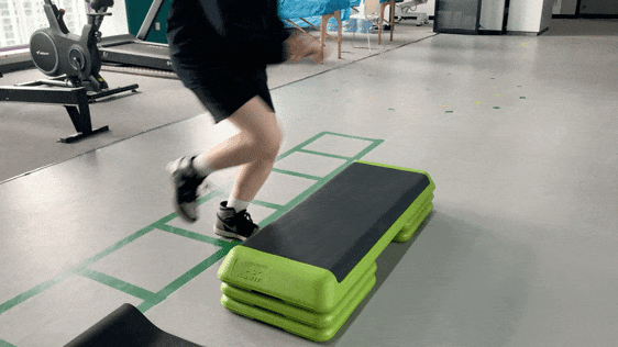 进行双脚跳、单脚跳训练,练习软着陆:前脚掌先着地、膝关节微屈、重心下降。落地控制能力是安全重返运动的关键。