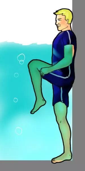 在水中提膝可以帮助提高膝关节的灵活性和弯曲范围,如图在水中站立,背部靠墙,双脚分开,逐渐提起患侧大腿,并弯曲膝关节,将膝关节提升至腰部,然后缓慢降低并完全伸直膝盖,慢慢重复这个动作10次。