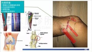 前叉损伤时,会伴随内侧副韧带的损伤,所有术后内侧副韧带有轻微按压痛是很正常的,如果没有内侧副韧带的损伤,这里有按压痛,需要优先考虑放松内收肌,和内侧腘绳肌