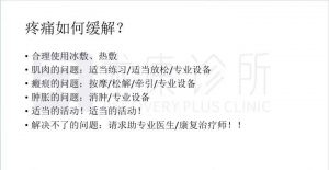 - 有特殊手术处理方案的患者,如果遇到其他情况的疼痛,建议大家求助专业医生或专业康复治疗师。