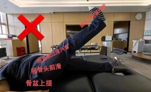 3、将下肢抬离床面,屈髋(由于髂腰肌抑制,股直肌完成了第二和第三步)。