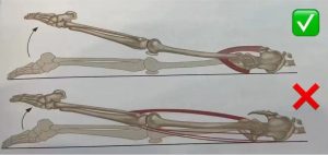而还有一类情况,当髂腰肌抑制时,为了能完成屈髋这个动作,可能会通过整个屈肌链的激活来完成直腿抬高,术后早期做直腿抬高的患者朋友们可以回顾下,自己是否是这样做直腿抬高: